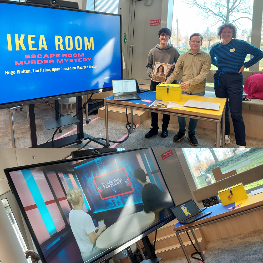 Ons idee is een IKEA Room, maar wat houdt dat concreet in? Hier hebben we verder over nagedacht. We willen een combinatie creëren van een Murder Mystery en een Escape Room. Het concept is een spel/activiteit waarbij teams moeten samenwerken om een gezamenlijk doel te bereiken: het oplossen van een moord en het vinden van de dader. Om dit idee te realiseren, zijn we begonnen met het ontwerpen van een kist waarin alle spullen voor het spel kunnen worden opgeborgen. De kist hebben we uitgetekend en uitgewerkt om die te kunnen tonen bij onze eerste feedback ronde.