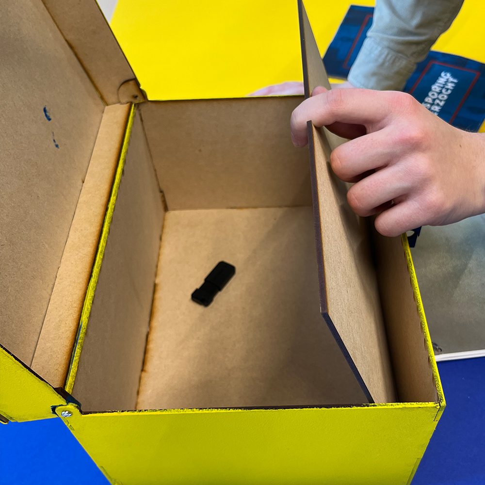 Daarnaast heb ik gewerkt aan het loslaten van perfectionisme, zodat het mijn proces niet zou belemmeren. In plaats van te veel tijd te besteden aan details, heb ik bewust gefocust op voortgang en flexibiliteit. Bijvoorbeeld de doos die niet helemaal perfect geschilderd was of werk dat niet helemaal lekker geprint was of tijdens het opnemen waar nog dingentjes wat beter zouden kunnen. Hier heb ik bewust gekozen om hier niet op door te gaan en te doen met wat we hebben. Hierdoor kon ik sneller schakelen en bleef ik openstaan voor veranderingen en suggesties tijdens het ontwerpproces.