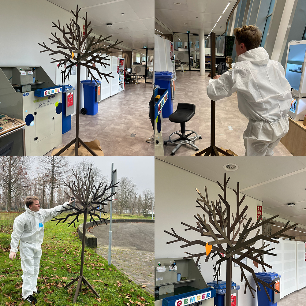 We hebben gekozen voor een boom in plaats van twee, wat ons eerste idee was. We zijn ervan overtuigd dat het spel makkelijker te spelen is met een boom en meer impact heeft wanneer je een boom gebruikt.