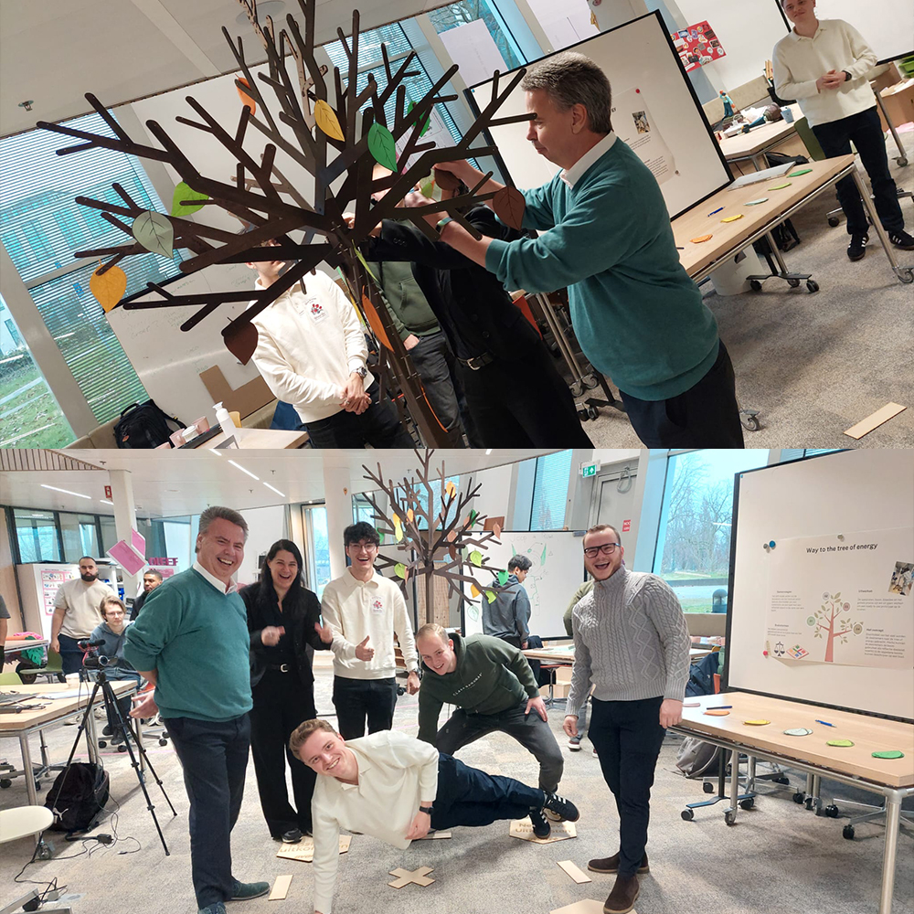 Zo hebben we onze presentatie interactief gemaakt en hier kregen we al snel positieve reacties op. Ook konden ze na afloop van de tafel blaadjes pakken om deze vervolgens aan de boom te hangen om het helemaal compleet te maken.